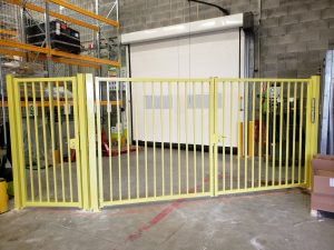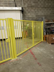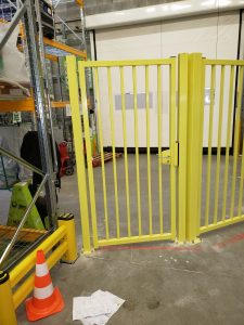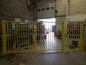 Pose portail acier battant industriel à barreaudage manuel avec portillon pour fermer un accès